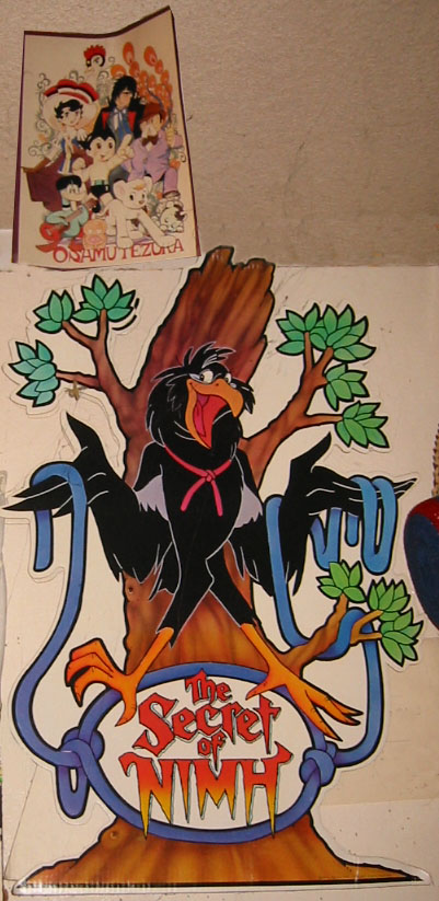 a 4ft. standee of Jeremy from Secret of Nimh, alongside a small poster of Osamu Tezuka characters.. (100k)
